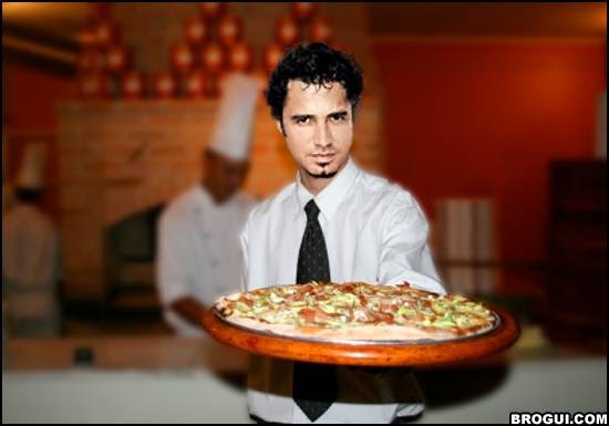 LATINO TEM CARA DE GARÇON DE PIZZARIA